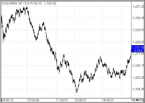 13일 서울외국환중개에 따르면 환율은 전 거래일 종가(1236.20원) 대비 8.20원 하락한 1228원에 거래를 마쳤다. 종가 기준으로 지난 5일 이후 6거래일 만의 하락 전환이며, 1220원대 하락은 8일(1225.10원) 이후 사흘 만이다. 장중엔 12원 가까이 하락하며 1224.70원까지 내리기도 했다.