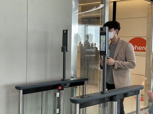 인상적이었던 것은 직원들의 출입 과정이다. 입구에 설치된 얼굴인식 출입구에는 SK텔레콤이 자체 개발한 인공지능(AI) 기반 얼굴인식 솔루션 '누구 페이스캔(NUGU facecan)'이 적용돼 있는데, 마스크를 쓴 채 시범을 보인 직원의 얼굴을 약 0.2초만에 인식했다. 인식 과정이 따로 없다고 생각이 들 정도로 빠른 속도였다.