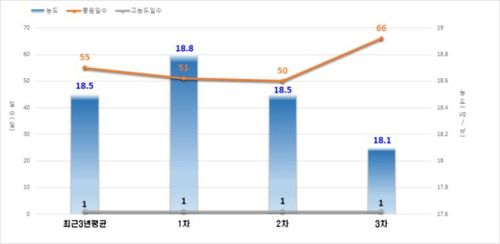 지난해 12월부터 올해 3월까지 제3차 계절관리제 기간 동안 초미세먼지 평균 농도는 18.1㎍/㎥로 지난해(18.5㎍/㎥)보다 2%P 줄어들었다.