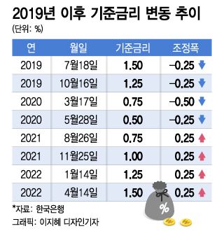 한국은행이 총재가 부재한 상황에서도 기준금리를 0.25%포인트 전격 인상했다. 러시아-우크라이나 전쟁 등으로 연간 소비자물가상승률(CPI)이 4%를 넘긴 만큼 기대 인플레이션(물가상승) 잡기 위해선 금리인상을 미룰 수 없었다는 게 금융통화위원회의 판단이었다.