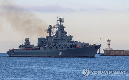 (런던=연합뉴스) 최윤정 특파원 = 러시아 흑해함대의 기함인 모스크바호가 우크라이나의 미사일 공격을 받아 폭발과 함께 큰 화재가 발생했다는 주장이 제기됐다.