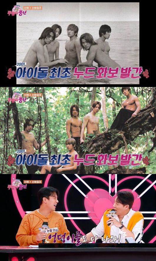 이날 방송에서는 신화의 한 팬이 소장 중인 희귀 브로마이드와 사진 배지를 잔뜩 꺼내 공개했다. 특히 그 중에는 신화가 2001년 발간했던 세미 누드집이 있어 관심을 모았다.