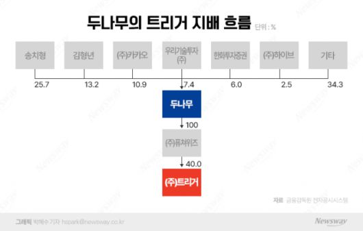 ◇ 두나무, 코인 리딩 운영 업체에 지분 투자 = 15일 업계에 따르면 국내 1위 가상자산거래소를 운영하는 두나무는 자회사인 퓨쳐위즈를 통해 코인 리딩방 운영 업체 ㈜트리거를 지배하고 있다. 퓨쳐위즈가 보유한 지분 비율은 40%다.