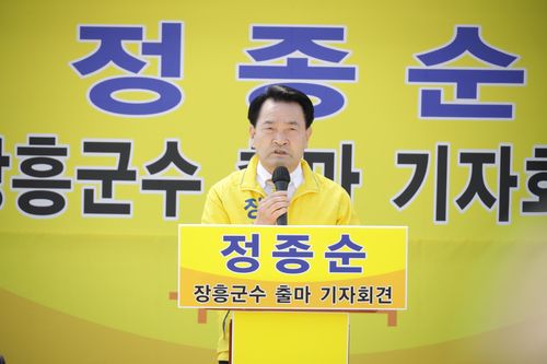 (장흥=연합뉴스) 손상원 기자 = 정종순 장흥군수는 15일 6·1 지방선거 출마를 선언하고 재선 도전 행보에 돌입했다.