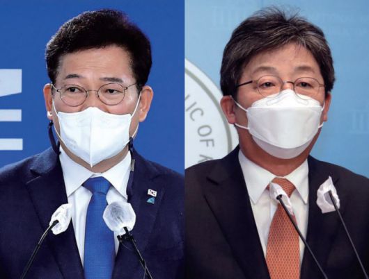 서울시장선거 출마를 선언한 송영길 전 민주당 대표(왼쪽)와 경기도지사 선거 출마를 선언한 유승민 전 의원 / 국회사진기자단·권호욱 선임기자 |