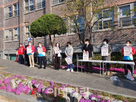 17일 오전 7시50분 PPAT 서울 고사장인 목동고등학교에서 국민의힘 당직자들이 응시생을 응원하고 있다. (사진=김유성 기자) |