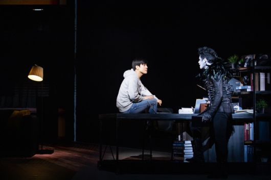 지난 1일 서울 충무아트센터에서 세 번째 시즌을 시작한 뮤지컬 <데스노트>의 한 장면. 라이토(홍광호·왼쪽)와 사신 류크(서경수)오디컴퍼니 제공 |