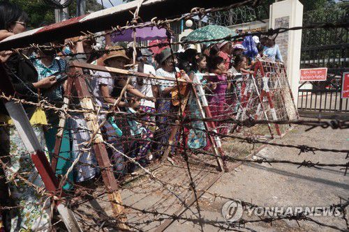 양곤 인세인 교도소 앞에서 가족이나 친지의 석방을 기다리는 미얀마 시민들. 2020.4.17 |