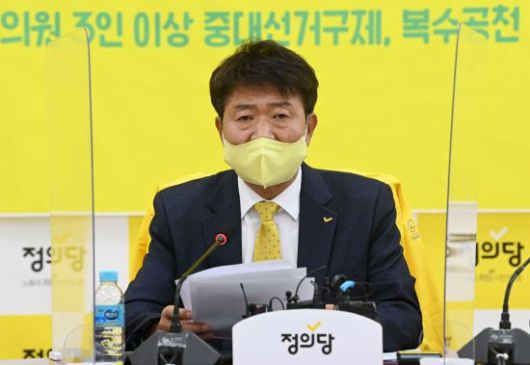 여영국 정의당 대표가 14일 서울 여의도 국회에서 열린 대표단 회의에서 발언하고 있다. [이미지출처=연합뉴스] |