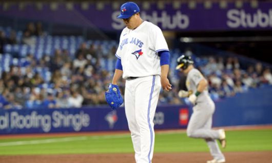 류현진은 17일 캐나다 온타리오주 토론토 로저스센터에서 열린 2022 미국 메이저리그(MLB) 정규리그 오클랜드 애슬레틱스와 홈경기에 선발로 마운드에 올랐지만 부진했다. 류현진은 4이닝을 던지면서 6피안타, 5실점 하고 교체됐다. 당초 16일 등판하기로 했던 류현진은 하루 더 충전 시간을 갖고 마운드에 올라섰지만, 구속은 오히려 떨어졌다. 류현진의 빠른 볼 평균 구속은 시속 143㎞에 그쳤고, 허용한 6안타 가운데 홈런 1개를 포함해 4개가 장타일 정도로 공에 묵직함이 없었다. 탈삼진은 1개였다. 사사구가 없었다는 게 유일한 위안거리였다.