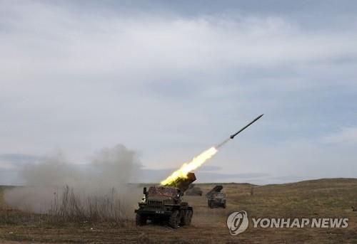 러시아군 진지 공격하는 우크라이나 다연장로켓포 |