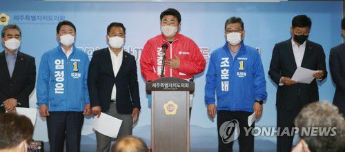 (제주=연합뉴스) 변지철 기자 = 제주도의회 서귀포시에 지역구를 둔 도의원들이 자신들의 지역구 통폐합에 반대하고 나섰다.