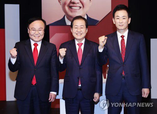 (대구=연합뉴스) 김현태 기자 = 홍준표·김재원·유영하 후보가 등판한 국민의힘 대구시장 경선이 관심을 모았던 김 후보와 유 후보의 단일화 없이 당심과 민심의 심판을 받는다.