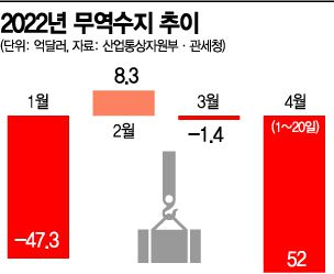 [아시아경제 세종=이준형 기자] 무역수지가 2개월 연속 적자 행진을 이어갈 가능성이 높아졌다. 고유가 여파에 에너지 수입액이 계속해서 늘어나는 데다 우크라이나 사태도 진정될 기미가 보이지 않기 때문이다. 코로나19 확산에 따른 중국의 대규모 봉쇄 정책도 장기화하고 있어 한국 경제 ‘성장 엔진’인 무역이 타격을 입을 수 있다는 우려가 점점 커지고 있다.