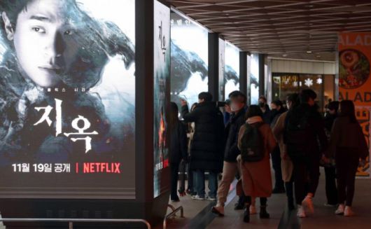 24일 오후 서울 강남구 코엑스에 설치된 넷플릭스 한국 오리지널 콘텐츠 '지옥' 체험존을 시민들이 둘러보고 있다. 2021.11.24./사진=뉴시스 |