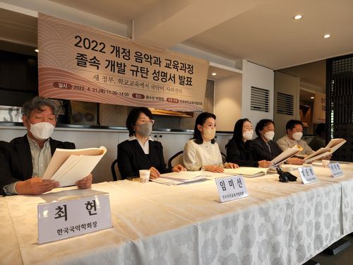 (서울=연합뉴스) 김지연 홍규빈 기자 = 국악교육자들과 국악인들이 정부가 추진 중인 2022 개정 교육과정에서 국악이 소외됐다며 반발하고 나섰다.
