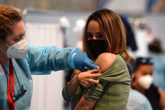 스페인 마드리드에서 한 여성이 코로나19 백신을 맞고 있다. 사진 속 여성은 기사 내용과 관계 없음.  /사진=AFP