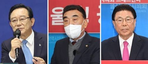 (울산=연합뉴스) 허광무 기자 = 오는 6·1 지방선거 울산시장 선거는 현직인 송철호 시장(더불어민주당)에 국민의힘 김두겸, 무소속 박맹우 등 2명의 후보가 도전장을 던지는 3파전 양상으로 압축됐다.