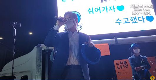열창 중인 송영길 전 더불어민주당 대표 /서울의소리 유튜브 |