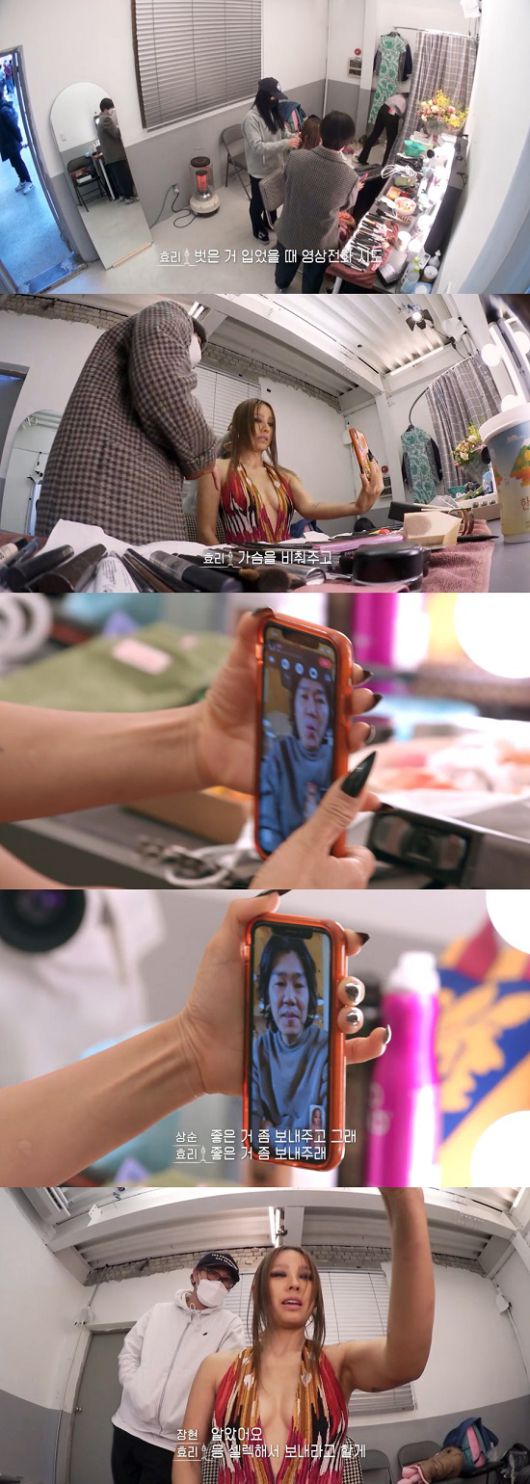 (엑스포츠뉴스 이예진 인턴기자) '서울체크인' 이효리가 화보 촬영 중 노출 의상을 입은 채, 남편 이상순에게 영상통화를 걸었다.