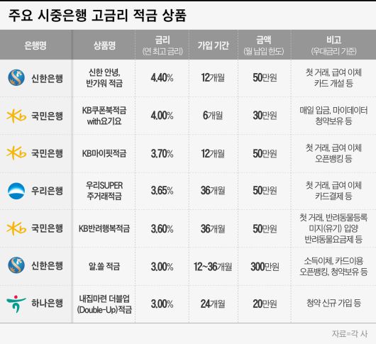 ◇ 주요 시중은행 연 4~5% 적금 상품 출시