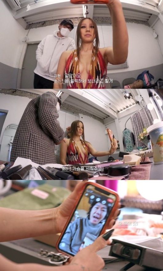 [헤럴드POP=조은미 기자]가수 이효리가 화보 촬영 중 노출 의상을 입고 이상순과 영상통화를 했다.