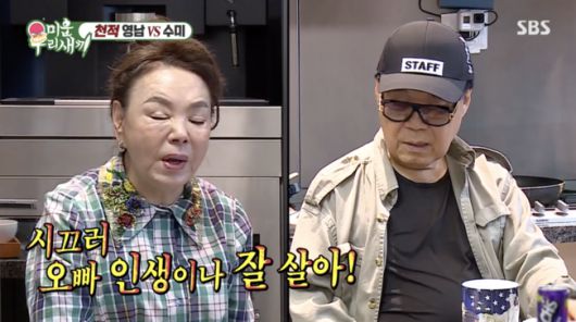 이 자리에 함께한 이상민과 이준호는 조영남과 김수미 눈치를 보며 "두분이 서로 싸우고 자리를 떴던 제작발표회 이후로 안 보고 사시는 줄 알았다"며 '그 사건'을 언급했다. 이는 2015년에 있었던 일로 김수미가 조영남에게 시청률을 더 끌어올리기 위해 열심히 해야한다고 지적하자 불쾌했던 조영남이 자리를 박차고 나가버린 것이었다. 뿐만 아니라 조영남은 그 길로 프로그램에서 하차까지 했다. 그 후 둘은 조영남이 소송을 하던 당시 마음써준 김수미의 의리로 화해했다.