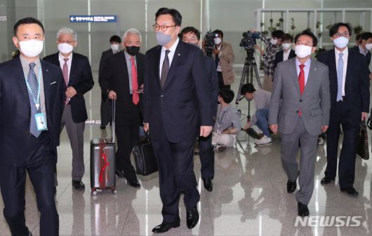 한일 양국 관계자에 따르면 대표단은 25일 일한의원연맹 회장인 누카가 후쿠시로(額賀福志?) 전 재무상과 조찬 모임을 가진다. 강제징용 등 문제에 대해 논의할 전망이다.