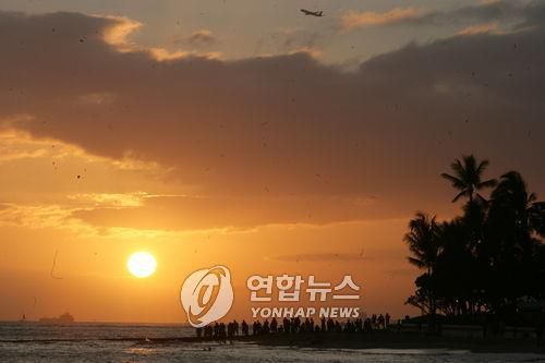 하와이 와이키키 해변 일몰 |