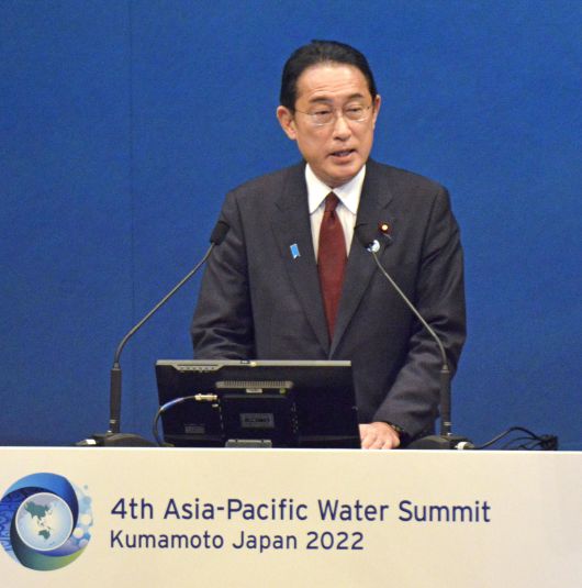 기시다 후미오 일본 총리가 최근 일본 구마모토시에서 열린 '제4회 아시아·태평양 물 정상회의'에 참석해 발언하는 모습/교도 연합뉴스 |