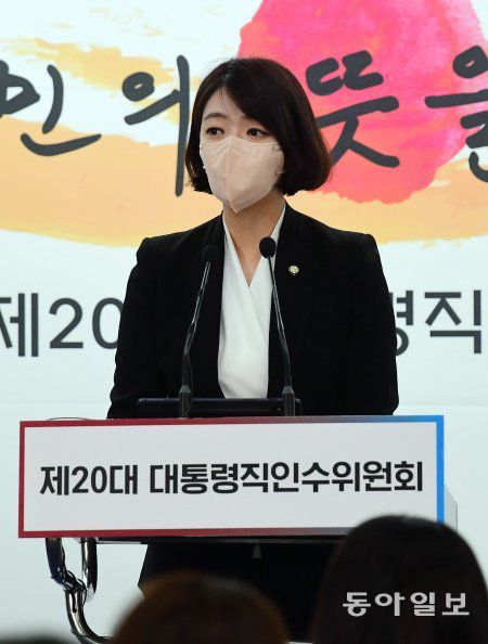 배현진 대통령 당선인 대변인이 27일 오전 서울 종로구 통의동 제20대 대통령직인수위원회 공동기자회견장에서 일일 브리핑을 하고 있다. 송은석 기자 silverstone@donga.com |