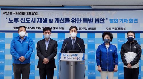 박 의원은 이날 인천시 연수구청에서 기자회견을 열고 '노후 신도시 재생과 개선 특별법'을 대표 발의했다고 전하면서 이같이 밝혔다.