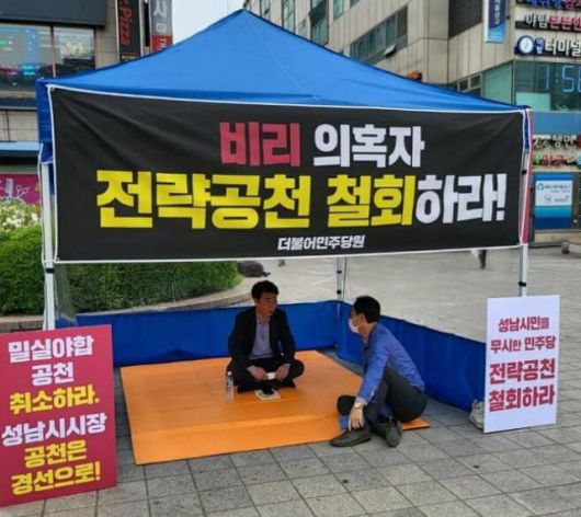 지역에서 수 년 간 정치활동을 한 조신 성남시장 예비후보는 “성남시민의 선택권을 박탈한 공천”이라며 25일부터 단식 투쟁에 나섰다. 조 예비후보는 “배 후보는 이재명 상임고문뿐만 아니라 성남시와 아무런 연관성을 찾을 수 없다”며 “민주당이 국민의힘 대통령(이명박), 단체장(유정복 인천시장) 밑에서 일 한 인물을 전략공천 한 것은 이번 선거에서 이기고자 하는 의지가 없는 것”이라고 말했다. “경쟁력도 상징성도 없는 전직 관료를 이재명 후보의 정치적 고향인 성남시의 후보로 공천하는 것은 당원과 성남시민에 대한 모독”이라고도 했다.