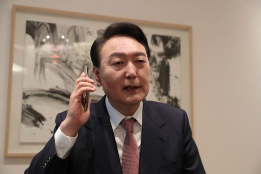 윤석열 대통령 당선인이 지난 3월 10일 오전 서초동 자택에서 조 바이든 미국 대통령과 전화 통화를 하고 있다. (사진=연합뉴스) |