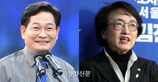 더불어민주당 서울시장 후보 경선에 출마한 송영길 전 대표와 김진애 전 의원. 국회사진기자단·경향신문 자료사진 |