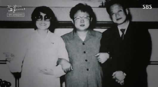 5년이 지난 어느 날, 그날도 어김없이 김정일에게 파티 초대 전화가 왔어. 김정일의 자택으로 초대된 최은희 앞에 누군가가 등장했는데 바로 신상옥 감독이었어. '내가 지금 귀신을 보고 있나? 왜 저 사람이 북한에 있는 거지?' 신 감독도 최은희와 똑같은 방법으로 북한 공작원에 납치됐대. 그런데 신 감독은 북한에 끌려온 직후 두 번의 탈출을 시도하다 정치범 수용소에 감금되어 5년 만에 최은희를 만나게 된 거야. 그날 찍은 사진도 있어. 최은희와 신 감독 사이에서 팔짱을 끼고 있는 인물이 김정일이야.