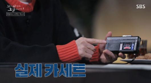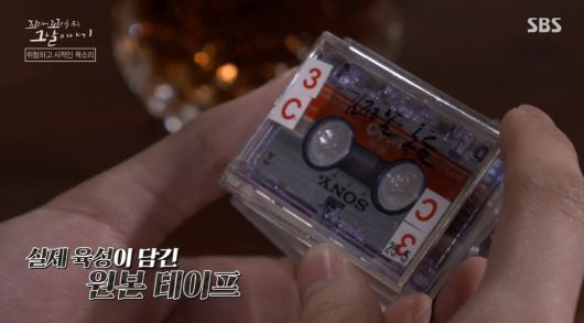 이게 바로 40년 전, 김정일의 육성을 녹음했던 실제 그 녹음기, 육성이 담긴 원본 테이프야. 김정일의 목소리를 몰래 녹음하는 데 성공했고, 다행히 녹음에는 꼭 필요했던 말이 담겼어.