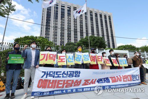 (서울=연합뉴스) 조다운 기자 = 정부가 가덕도신공항 예비타당성조사(예타) 면제 추진을 공식화한 것을 두고 가덕도신공항반대시민행동 등 8개 시민단체는 29일 "안전성에 경제성까지 없는 가덕도신공항 예타 면제는 있을 수 없다"고 반발했다.