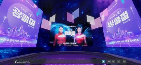 [서울=뉴시스]권안나 기자 = 3차원(3D) 테크 플랫폼 기업 아키드로우는 롯데홈쇼핑 '대한민국 광클절' 행사를 위한 '광클 메타버스관'을 구축했다고 29일 밝혔다.