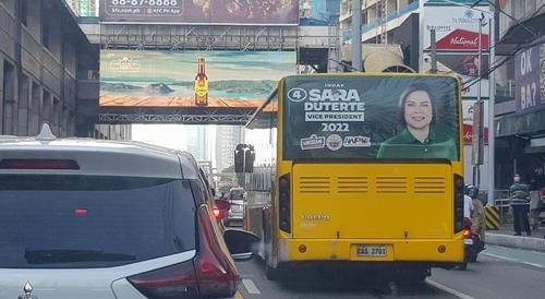사라 두테르테 부통령 후보의 홍보물을 부착한 버스 |