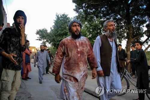 폭발 참사 발생한 카불 서부 모스크를 떠나는 신자들 |