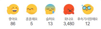 기존엔 ▲좋아요 ▲훈훈해요 ▲슬퍼요 ▲화나요 ▲후속기사 원해요 등 5가지 버튼 중 하나로 감정을 표현할 수 있었지만 개편 후엔 슬픔이나 분노 등 부정적인 감정을 표현할 수 없게 된 것이다.