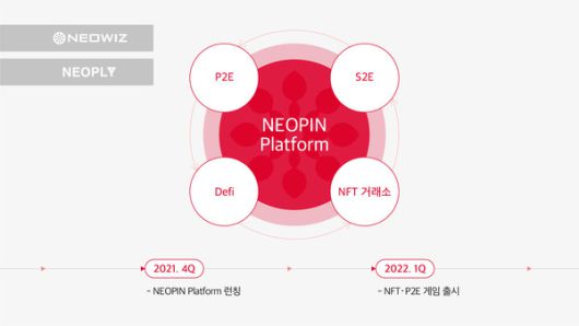 네오위즈는 지난해 11월 실적 발표를 통해 블록체인 게임 신작 출시 및 기존 작품에 P2E 서비스를 도입하겠다고 밝히며 관련 사업 진출을 선언했다. 그동안 쌓아온 블록체인 운영 노하우를 바탕으로 자회사 네오플라이를 통해 블록체인 플랫폼 '네오핀(NEOPIN)'을 오픈했으며, 암호화폐 '네오핀 토큰(NPT)'까지 발행했다.