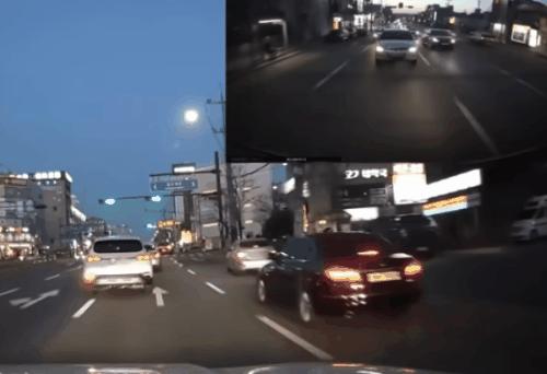 공개된 영상에는 옆차로에서 튕겨져 나오는 오토바이 운전자의 모습이 담겨 있다. 이를 보고 깜짝 놀란 제보자 A씨가 급정거 했지만 뒤따라오던 아내의 차량은 곧이어 A씨의 차량을 추돌했다.