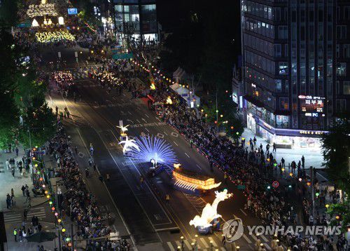 (서울=연합뉴스) 류영석 기자 = 불기 2566년 부처님오신날을 앞둔 30일 오후 연등 행렬이 서울 동대문을 출발해 종로를 지나 조계사로 향하고 있다. 2022.4.30 ondol@yna.co.kr ▶제보는 카카오톡 okjebo▶연합뉴스 앱 지금 바로 다운받기~▶네이버 연합뉴스 채널 구독하기 <저작권자(c)연합뉴스. 무단전재-재배포금지.>
