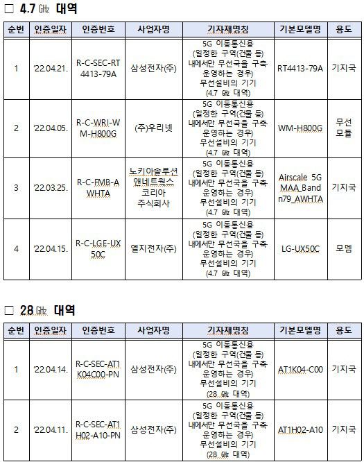 현재 국립전파연구원이 이음5G와 관련된 전파인증을 발급한 제품은 총 6개로, 28㎓ 대역 등을 이용한 실내·외용 기지국과 무선 모듈 등이다. 향후 ‘5G+ 융합 서비스 프로젝트’의 시범·실증 사업에 전파 인증을 마친 다양한 이음5G 장비가 이용될 것으로 과기정통부는 기대하고 있다.