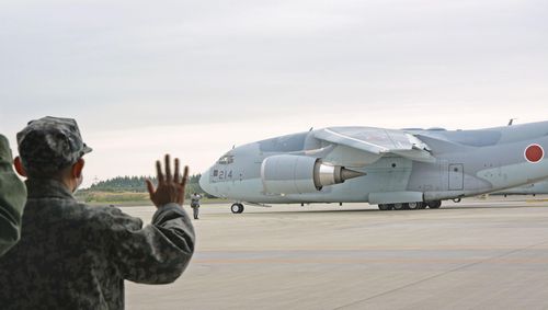 교도통신에 따르면 아랍에미리트(UAE)와 폴란드 사이를 오가며 난민을 위한 물자 수송을 담당할 항공자위대 C2 수송기가 이날 오전 일본 사이타마현 이루마 기지에서 출발했다.