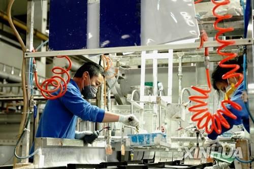 폐쇄 루프 방식으로 조업 중인 상하이의 한 자동차용 에어컨 공장. 사진=신화, 연합뉴스 |