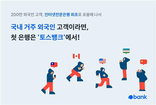 (서울=연합뉴스) 오주현 기자 = 토스뱅크가 인터넷 전문은행 최초로 국내 외국인 고객 대상 비대면 뱅킹서비스에 나선다고 2일 밝혔다.
