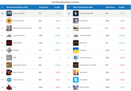 자회사인 컴투스의 '서머너즈 워: 백년전쟁' 또한 지난달 웹3.0 콘텐츠를 업데이트하며 글로벌 유저들의 관심사에 올랐다. '서머너즈 워'는 콘텐츠 업데이트 직후 소셜 스코어 1819로 1위를 내달린 바 있으며, 현재도 검색량 순위 2위를 기록하며 많은 이슈 몰이의 중심이 되고 있다.